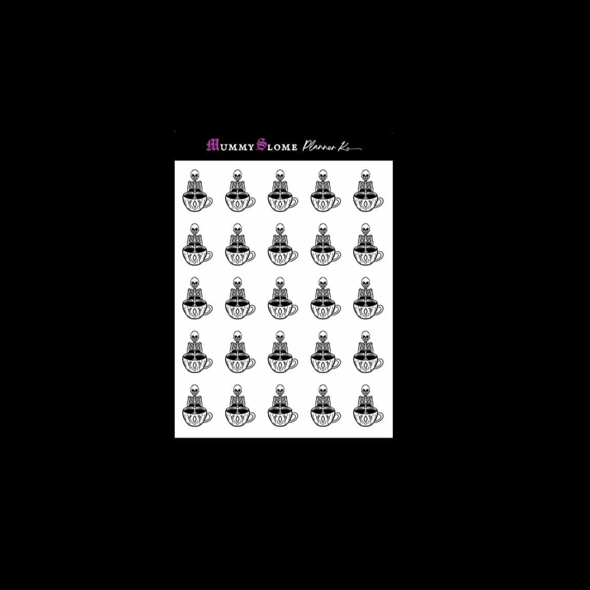 Summon your energy with these eerie coffee cup stickers featuring a skeletal sorceress rising from her brew—because let’s face it, caffeine is the real dark magic 🖤☕💀. Perfect for marking coffee breaks, spellbinding mornings, or moments when your planner needs a jolt of mystical chaos 🔮📅🔥. With gothic flair and spooky vibes, each sticker blends ritual and rebellion in one perfectly poured potion.