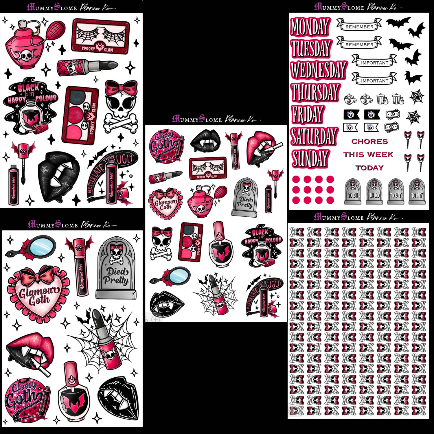For the dark-hearted planners who love a mix of elegance and edge, this Glamour Goth sticker kit is drop-dead gorgeous! A blend of bold black, deep red, and hauntingly chic designs, these stickers are perfect for adding a spooky yet stylish touch to your planner.