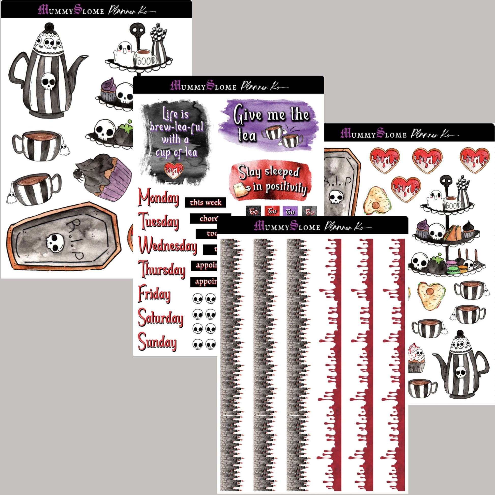 Sip in shadows with the Gothic Tea Time sticker kit! 🖤🍵 These darkly elegant teacups, cupcakes, and cookies add a sophisticated yet gothic touch to your planner. Perfect for lovers of both tea and the macabre, this sticker set will make your spreads as enchanting as a midnight tea party. Turn every page into a work of art, combining gothic beauty and practical planning. 🕯️🫖 Bring a little mystery to your everyday routine!
